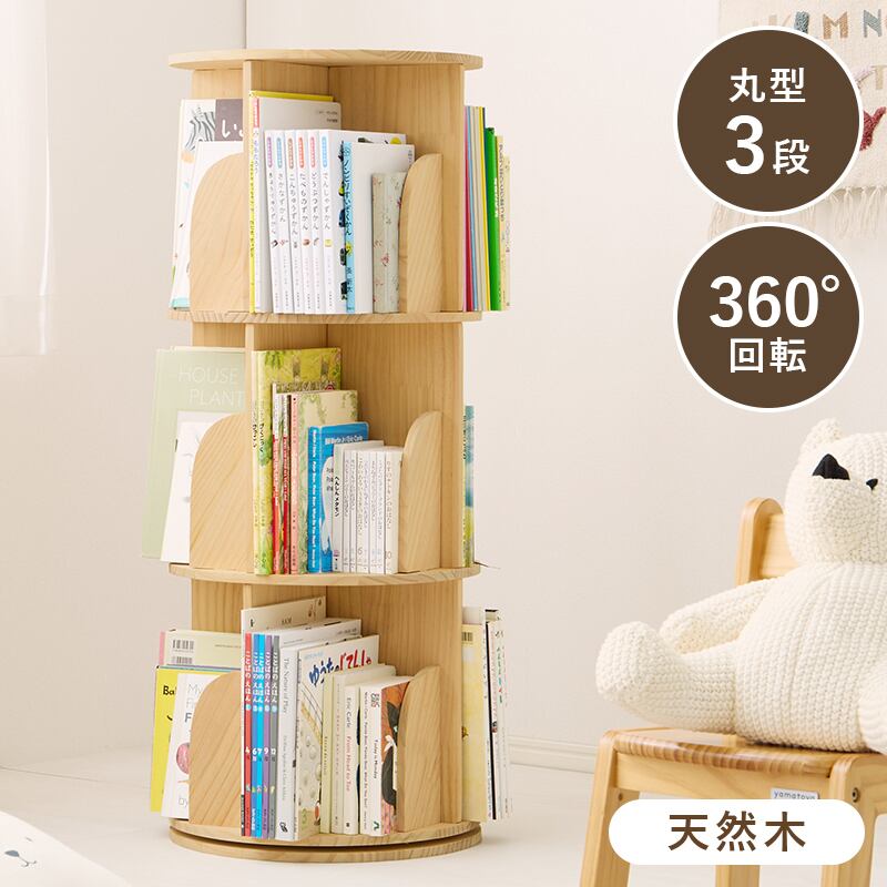 丸回転ラック ブックラック 3段 丸型 天然木 360°回転
